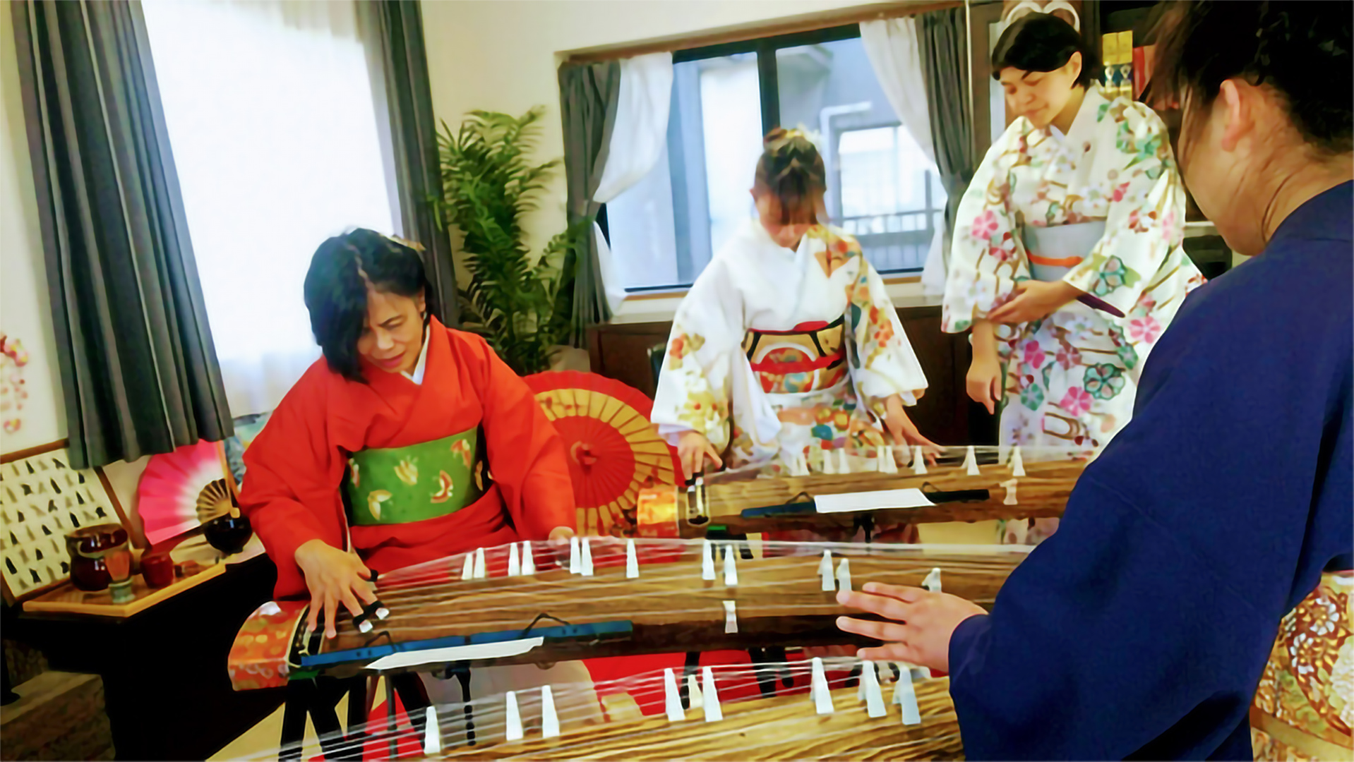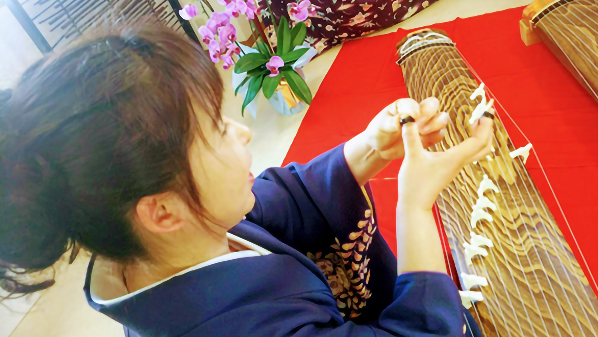 How about put on the Kimono and play the traditional Japanese instrument called Koto?